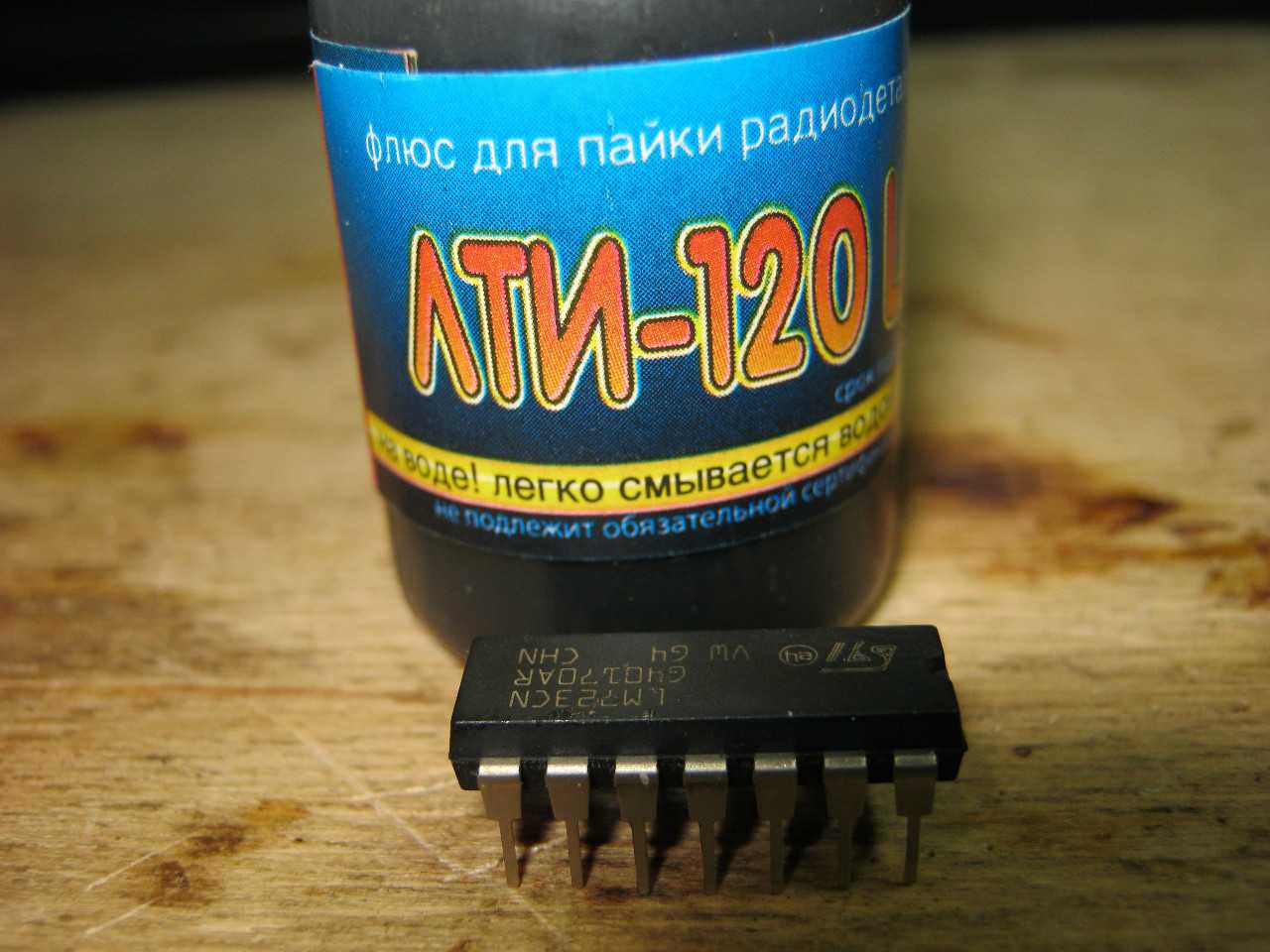 Подготавливаем новую микросхему, и лудим ее выводы флюсом ЛТИ-120