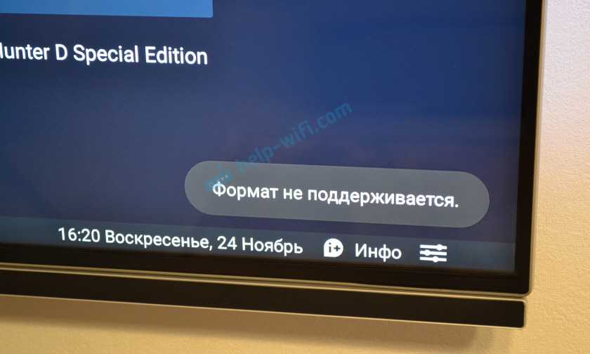 Но бывает и такое, что телевизор определенный формат поддерживает, но видео этого формата все ровно не воспроизводит. Причина может быть аудиодорожках видеофайла, которые телевизор не поддерживает (нет поддержки кодеков).
