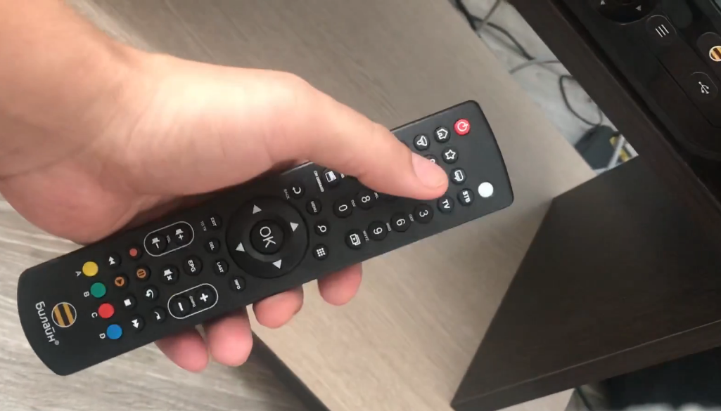 - Абонент должен перейти в режим приставки на пульте, используя кнопку STB, после чего зажать ОК до возникновения 2 сигналов;