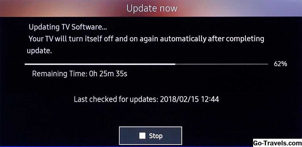 Важный: Не выключайте телевизор во время процесса обновления. Телевизор должен оставаться включенным до завершения обновления. Телевизор автоматически выключится и включится после завершения обновления программного обеспечения, которое перезагрузит телевизор. В зависимости от характера обновления настройки звука и видео могут быть сброшены до заводских значений по умолчанию после обновления программного обеспечения.