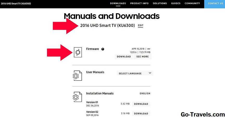 - Выбрать Загрузки или прокрутите вниз в Руководства и загрузки.