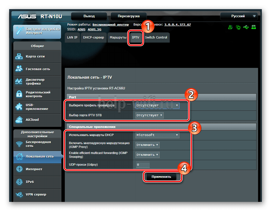 Настройка IP TV для ASUS RT N10 выглядит так: