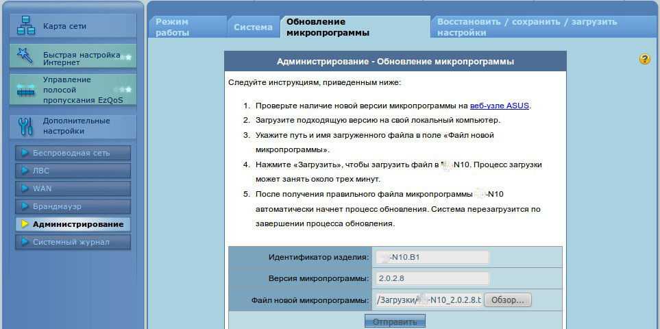 Обновляется микропрограмма маршрутизатора просто, но по-своему у каждой версии прошивки. Зайдите в систему настройки роутера, как это сделать мы опишем после следующего подзаголовка. Далее найдите раздел под названием «Настройки» или «Администрирование», в нем поищите раздел со словом «Обновление». К примеру, на скриншоте ниже (рисунок 3) раздел называется «Обновление микропрограммы». В нем нажмите на кнопку «Проверить», и система определит, вышла ли новая версия прошивки. В зависимости от результата страница выдаст сообщение, что обновление не требуется, или отобразит кнопку «Скачать».