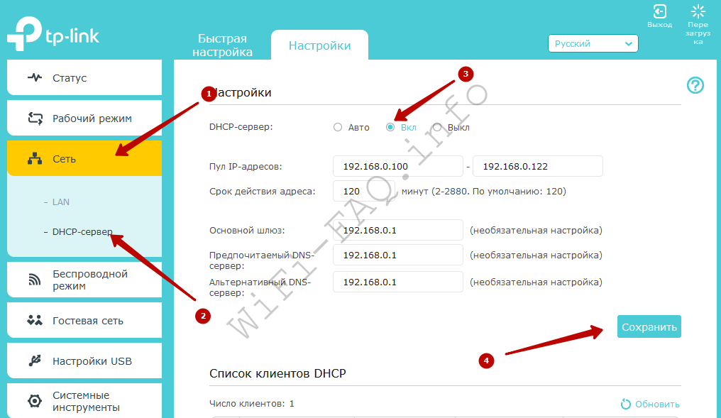 Когда невозможно организовать ВайФай соединение роутеров, оно не отвечает потребностям или нужно надежное подключение, маршрутизаторы коммутируются посредством витой пары. На первом роутере (главном), активируются функции DHCP и автоматической раздачи IP-адресов клиентам.