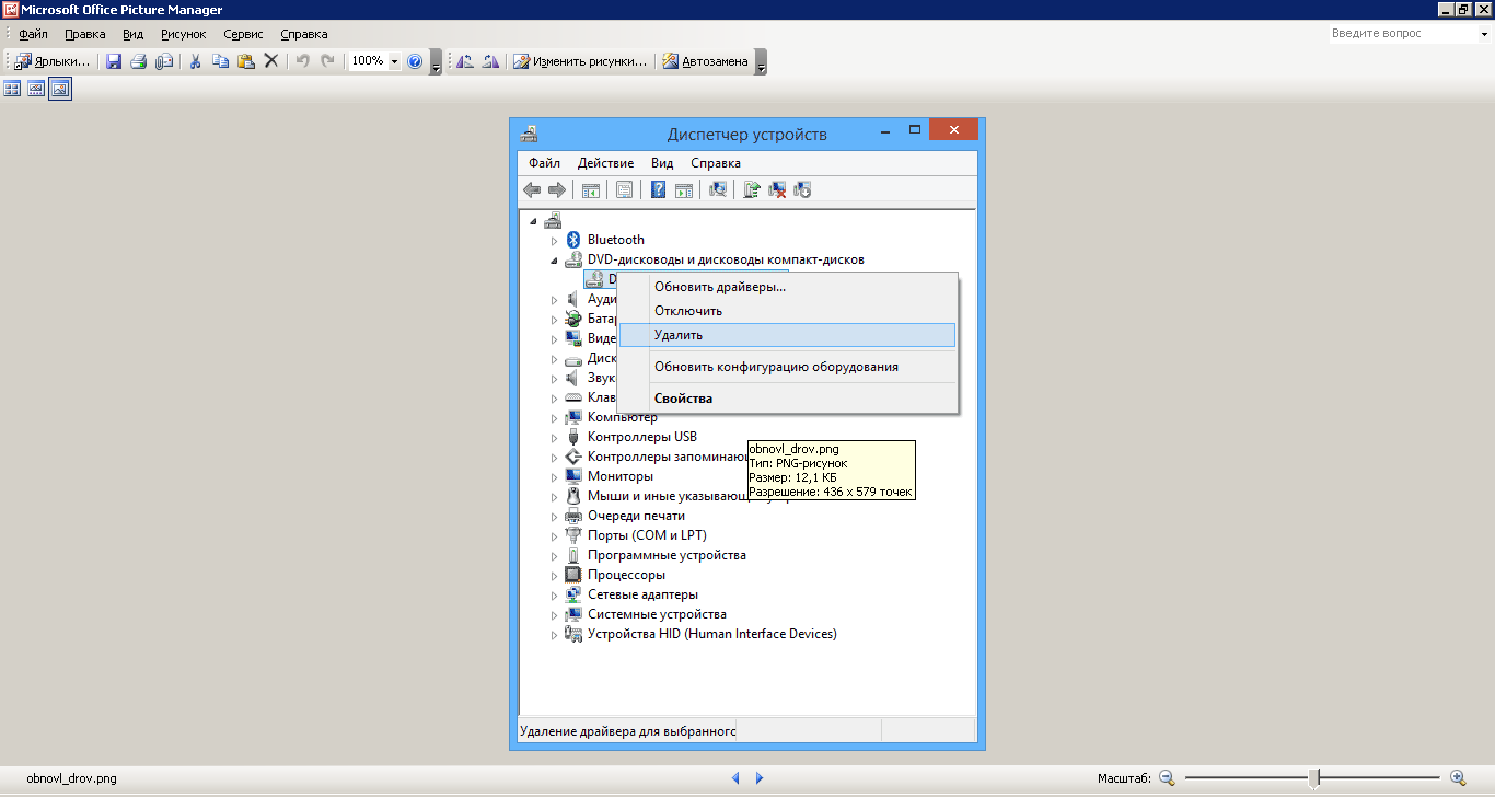 В списке устройств удаляем виртуальные приводы, если этого не произошло после удаления программ, с которыми мы познакомились выше. Жмём правой кнопкой мыши на виртуальном приводе и в выпадающем меню выбираем «удалить». Для полного удаления оставленных следов, нам нужно найти драйвер «SPTD» и удалить его. Чтобы он отображался, включите функцию «Показывать скрытые устройства» в меню «Вид». Просмотреть изменения можно будет после перезагрузки компьютера.