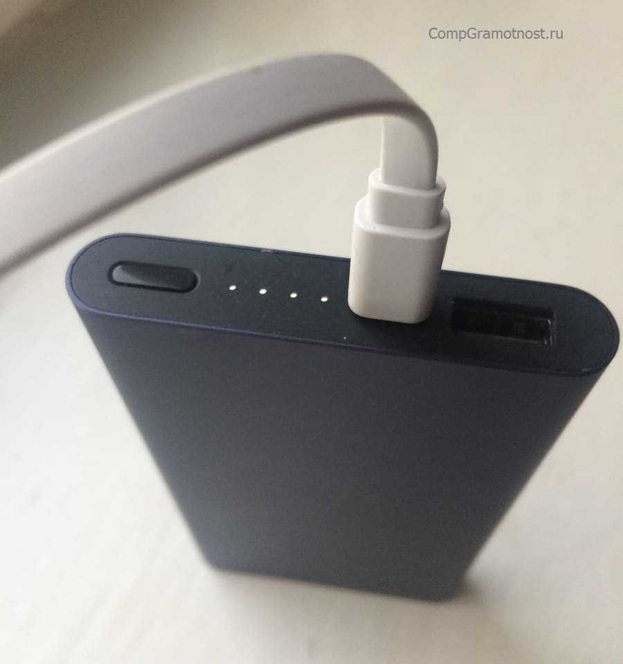 и, пожалуй, самый популярный — от компьютера или ноутбука через USB-порт. Одной стороной кабеля подключаете Power Bank, другой — вставляете в порт USB, устройство сразу же начинает заряжаться.