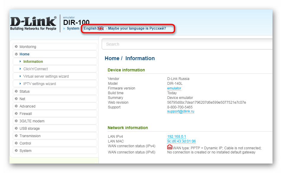 Сразу отметим, что вид веб-интерфейса в разных прошивках различается, однако все кнопки и их названия не меняются, поэтому вам придется лишь разобраться с их расположением, если увиденное на скриншотах будет отличаться от установленного меню.
