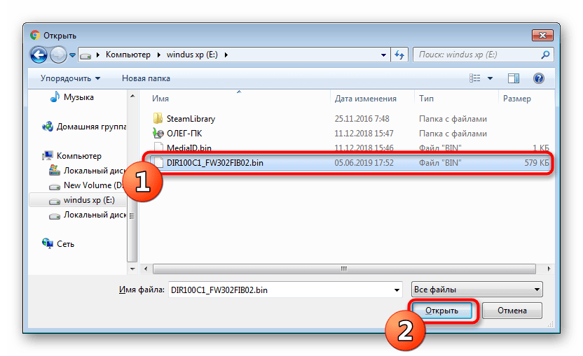 В открывшемся Проводнике отыщите скачанный BIN-файл и откройте его.