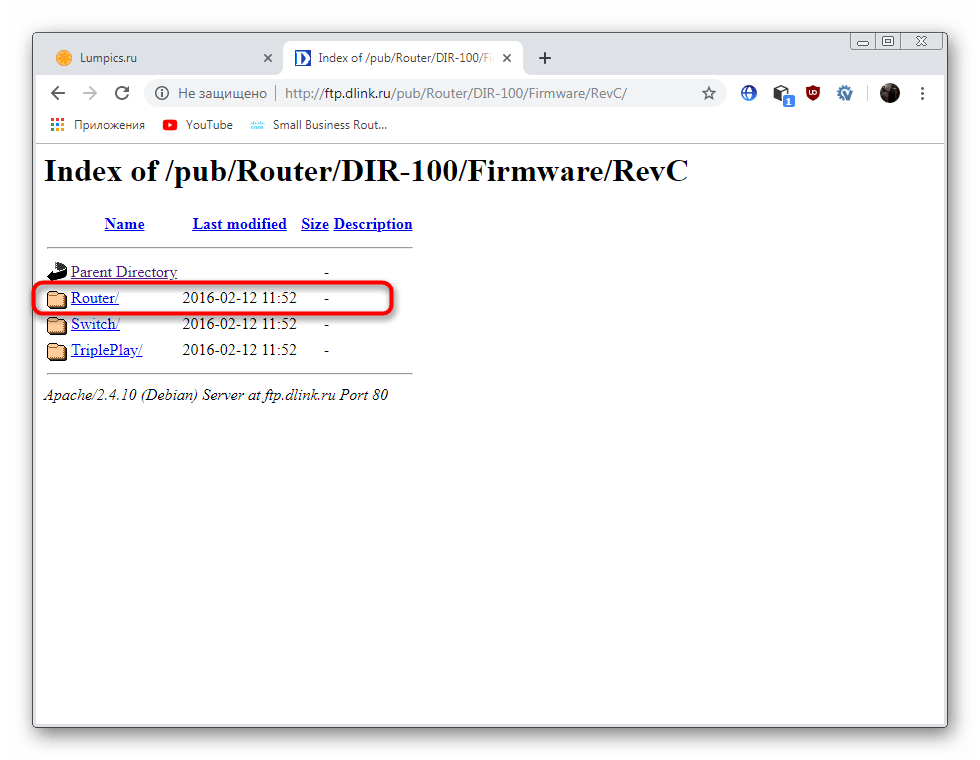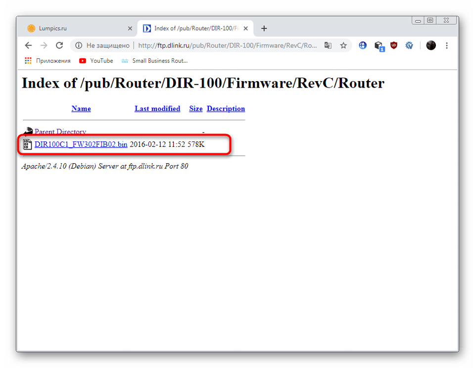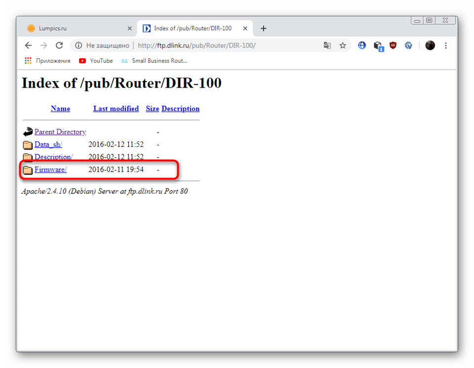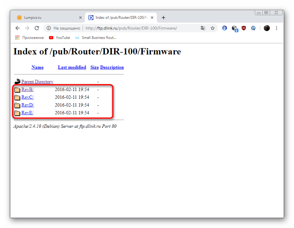 - Перейдите по указанной выше ссылке, чтобы попасть на FTP-сервер D-link с необходимыми файлами. Через поиск (Ctrl + F) отыщите требуемую модель. При этом обязательно учитывайте версию.