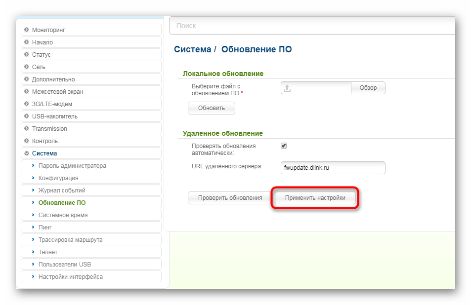 При нахождении обновлений станет активной кнопка «Применить настройки». Щелкните на ней, чтобы внести изменения.