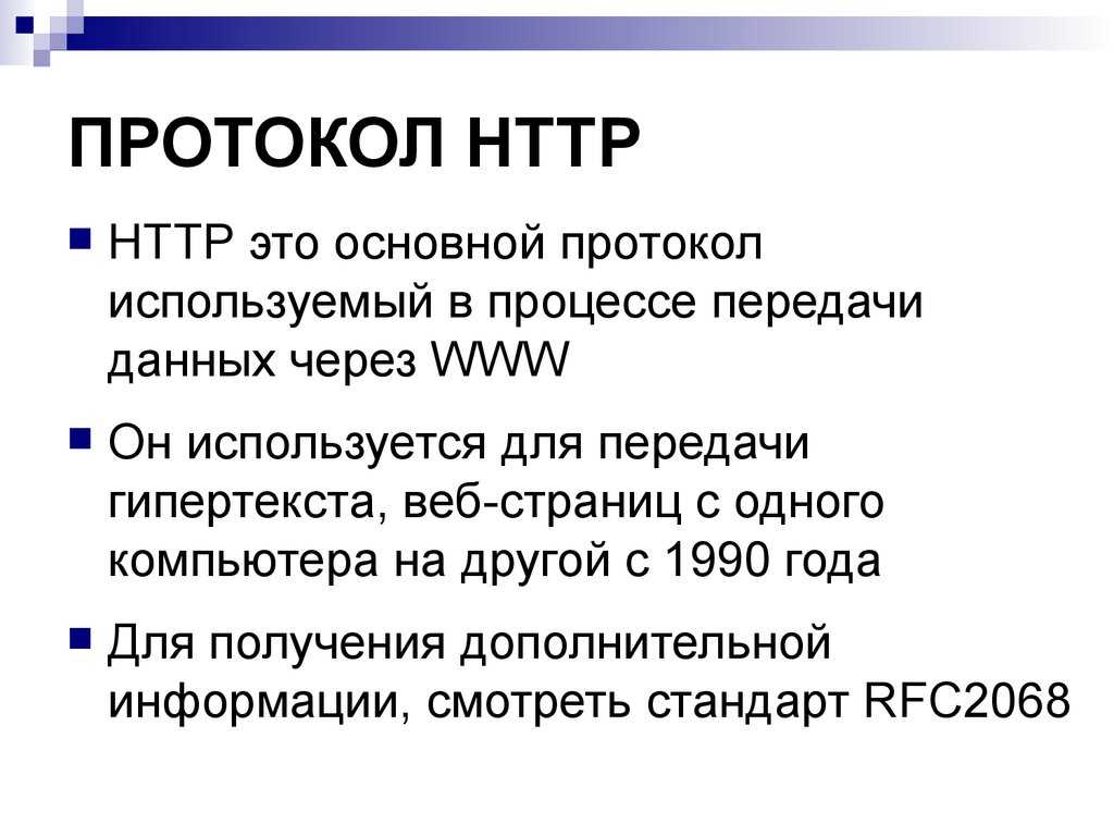 Это понятие расшифровывается как Hypertext Transfer Protocol. Он представляет собой протокол передачи гипертекста и имеет несколько версий. Первый экспериментальный вариант был придуман в CERN еще в 1991 году.