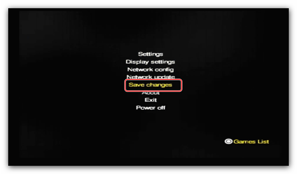 Закройте сообщение о сохранении настроек и снова нажмите Круг – появится список игр, находящихся на флешке. Используйте кнопки Вверх и Вниз на крестовине для выбора, и кнопку Крест для запуска.
