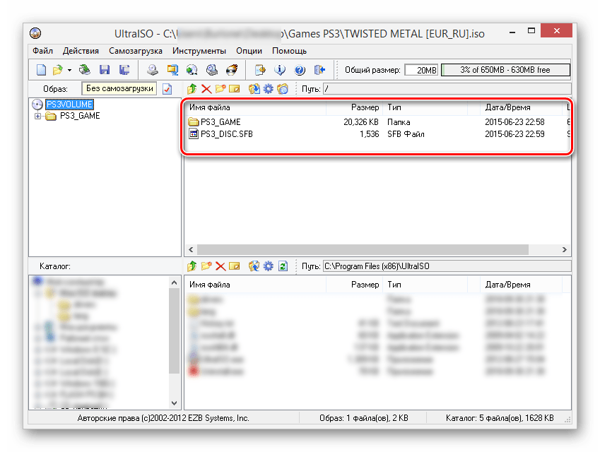 В готовом каталоге должна присутствовать папка «PS3_GAME» и файл «PS3_DISC.SFB».