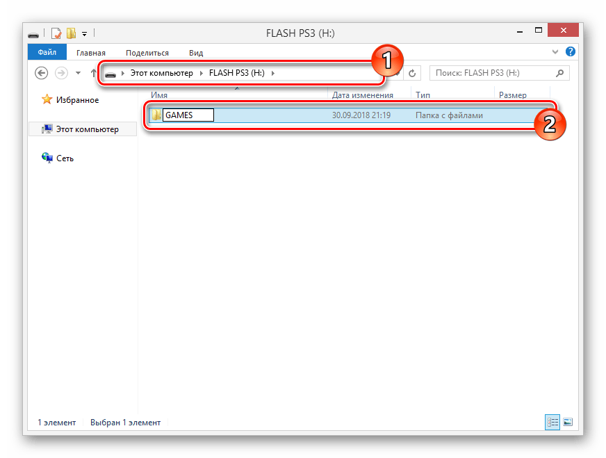 - Откройте корневую директорию накопителя и создайте новую папку «GAMES». В дальнейшем данный раздел будет использоваться в качестве основного каталога.