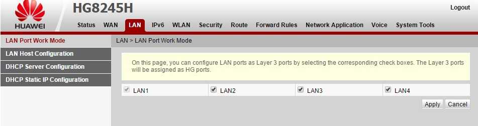 Далее необходимо проверить, что роутер хуавей hg8245 использует все LAN порты.