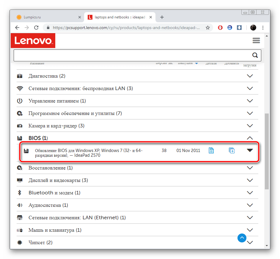 Еще раз кликните на название «Обновление BIOS», чтобы просмотреть все доступные версии.