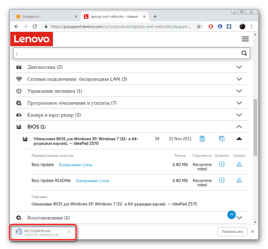 Теперь приступим непосредственно к обновлению. Сначала нужно загрузить и подготовить необходимые файлы. Осуществляются все действия в специальном вспомогательном софте от Lenovo. Скачать на компьютер его можно так: