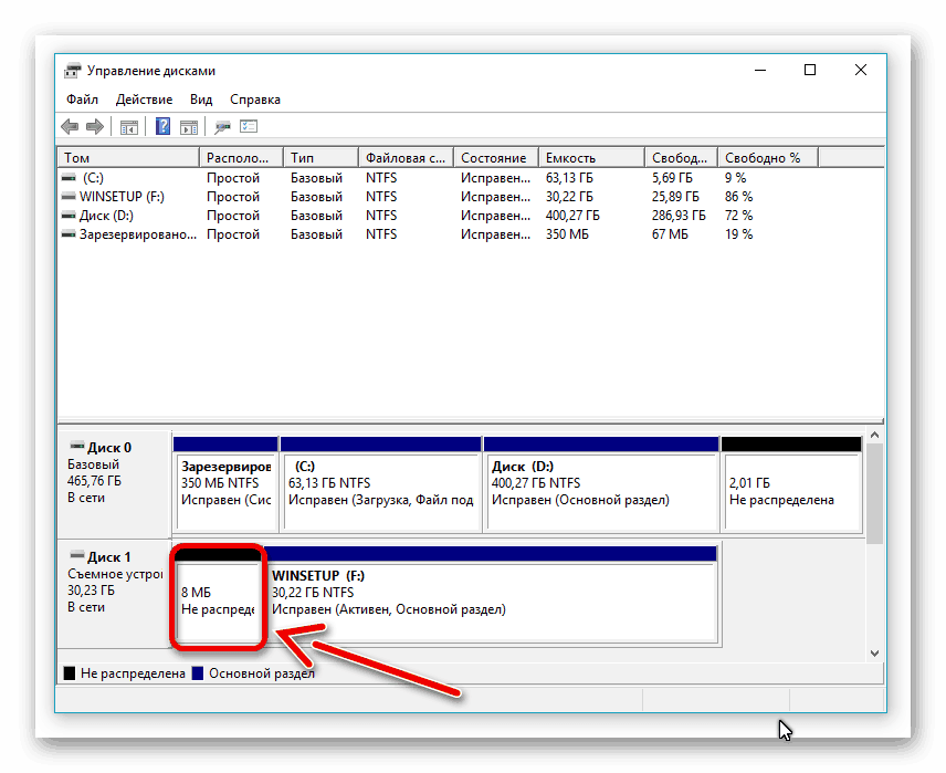 И первое, что необходимо сделать, это диагностировать внезапно возникшую проблему, так как без установки причины сбоя его устранение становится невозможным по определению. Провести комплексную диагностику неполадки можно несколькими способами и самый главный из них заключается в проверке аксессуара с помощью установленного по умолчанию в системе ПК инструмента «Управление дисками» (актуально для платформ Windows8 и старше).
