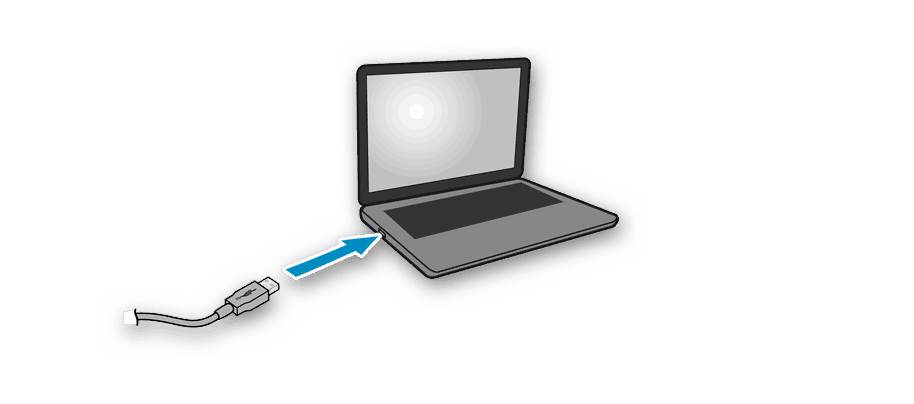- Распакуйте принтер и установите его в удобное место, запустив при этом и ноутбук, так как дальше он понадобится для подключения. В комплекте отыщите кабель с разъемом USB-B, который вставьте в соответствующий порт сзади или сбоку самого принтера. Изображение того, как выглядит этот провод, вы видите ниже.