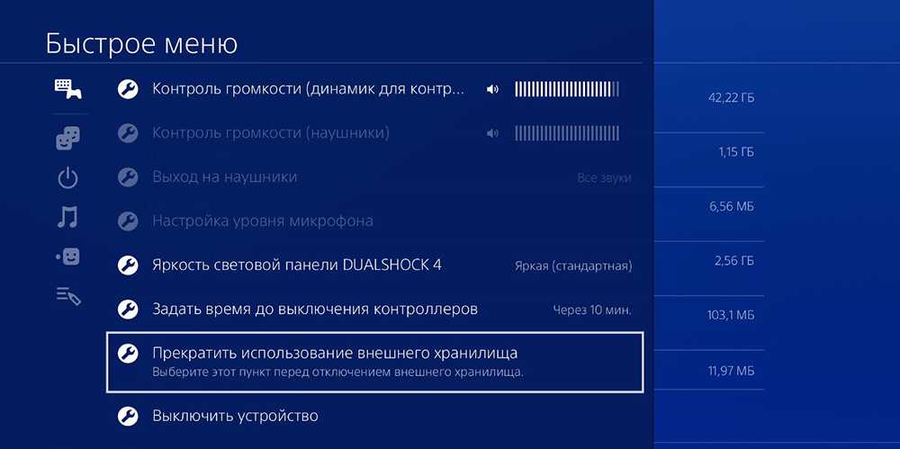 Нельзя вручную отсоединять внешний диск от включенной консоли во избежание повреждения накопителя и потери ценной информации. Для корректного извлечения носителя следует использовать быстрое меню приставки, отметив пункт «Остановить использование внешнего хранилища». В случае правильной последовательности действий система уведомит о том, что устройство может быть безопасно извлечено.