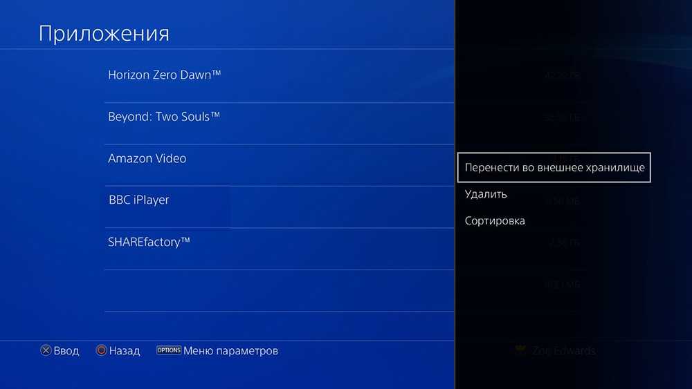 Перемещение игр осуществляется в настройках через подпункт «Хранилище». После нажатия кнопки Options можно выбрать необходимый контент и скопировать на внешний HDD.