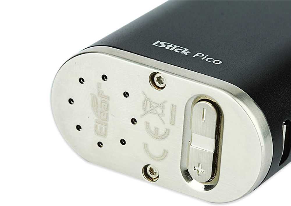 Чтобы установить аккум, понадобится несколько секунд. Открутите крышку вверху мода и вставьте аккумулятор + контактом вниз. Потом закрутите и уже приступайте к регулировке. Как Istick Pico будет настроен, подсоедините клир. Теперь можно заблокировать клавиши и довольствоваться приятным парением.