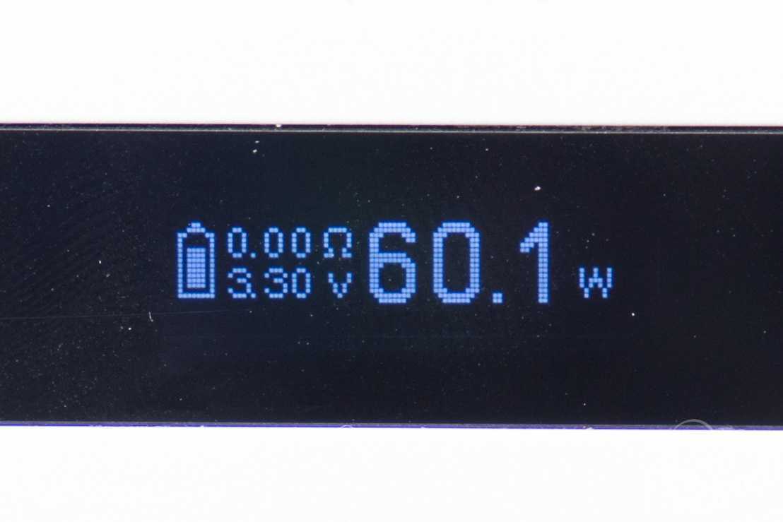 - Вариватт. Изначально регулировать напряжение можно в пределах от 1 до 100 Ватт, но прошивка от производителя увеличивает этот лимит до 120 Ватт. При использовании всего одного аккумулятора предельная мощность будет ограничиваться 75 Ваттами. Плата достаточно точная, поэтому погрешность составляет не более 10%;