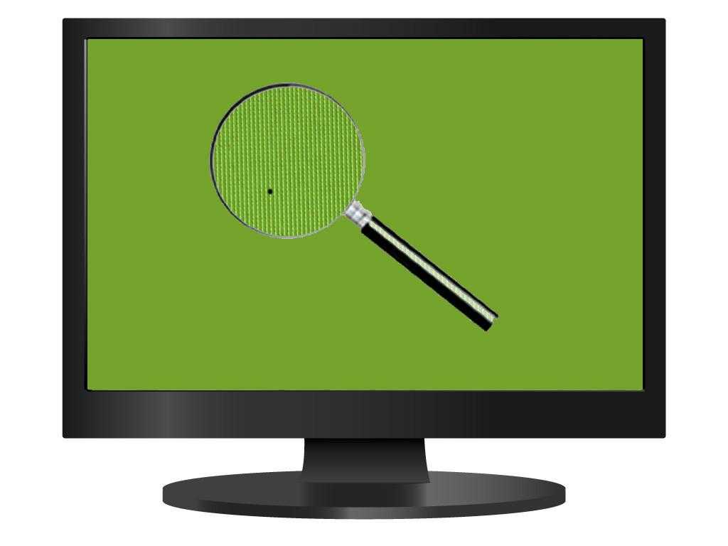 Дальше вооружитесь лупой и подробно рассмотрите весь экран монитора, двигаясь воображаемыми линиями слева направо, постепенно смещаясь вниз – как будто читаете книгу. Если обнаружите резко выделяющиеся на однородном фоне точки – это и есть испорченные пиксели