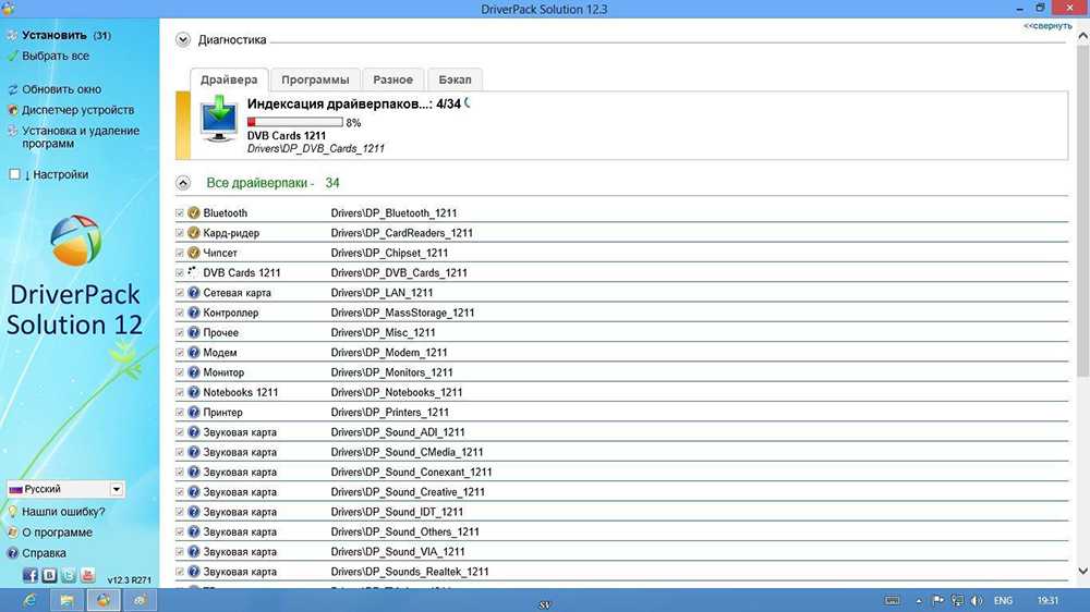 DriverPack Solution, куда же без него. Это сборник наиболее часто встречающихся драйверов. Всех драйверов. Чем новее версия — тем больше новых драйверов в ней присутствует. Сборник очень тяжёлый. На момент написания статьи полный сборник весит около десяти гигабайт, хотя есть и версия с загрузчиком, что определяет драйверы, которых не хватает, и скачивает только их.