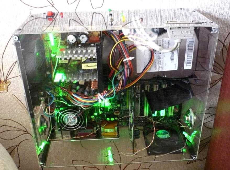 Интересный факт! В среднем, стандартный системный блок всего на 300 — 500 рублей дешевле, чем аналогичный корпус на компьютер из оргстекла. Причём в разницу включена и стоимость акриловых кулеров, и подсветка.