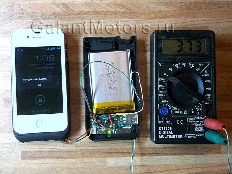 - Закройте корпус крышкой или склейте между собой половинки мыльницы — повер-банк готов! Устройства хватает на 4-5 подзарядок среднемощного гаджета.