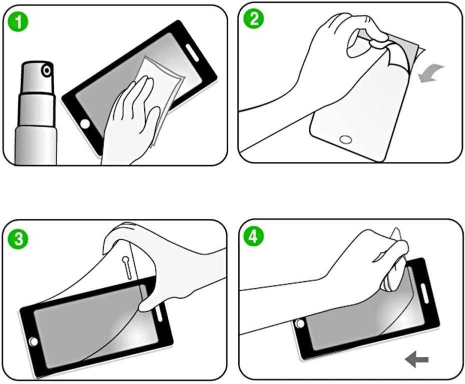 Для этого используйте жидкость для очистки дисплеев, антистатик или спирт. Тщательно удалите все пятнышки. Если вы только что сняли старую с телефона, сотрите остатки клея. После насухо протрите экран микрофиброй.