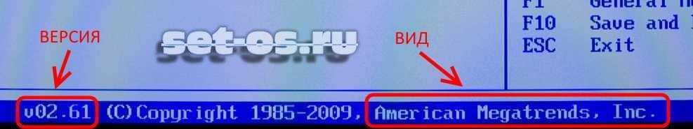 Зайдя в БИОС или УЕФИ обратите внимание — вид и версия БИОСа написана, как правило в самом верху или в самом низу экрана: