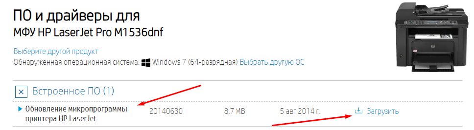 Скриншот: обновление микропрограммы HP LaserJet Pro M1536dnf