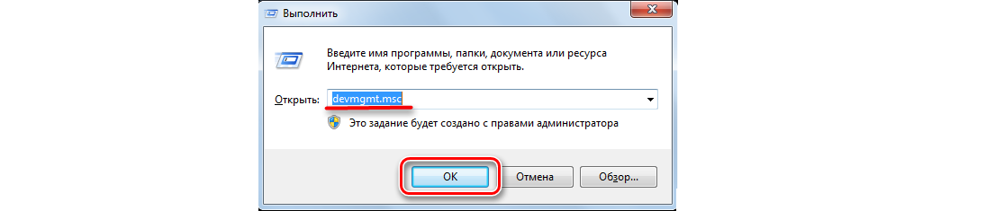 Ввод команды «devmgmt.msc» в окно выполнения команд