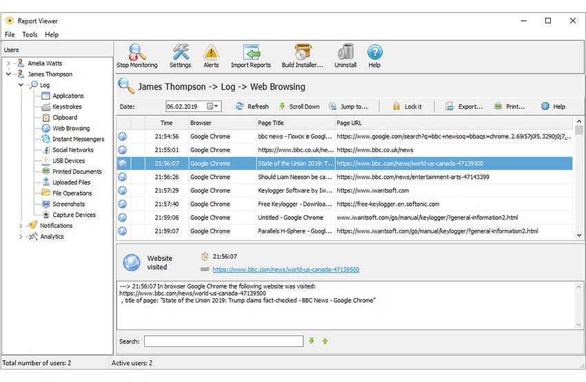 Это программа для слежения за действиями на компьютере, которая позиционируется как софт типа Parental Control («Родительский контроль»). То есть ее можно использовать и как программу для слежения за рабочим компьютером, но в этом смысле функционал шпионского приложения по сбору данных ограничен нижеописанными моментами.