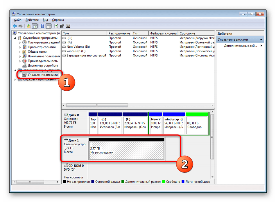 В Виндовс присутствует еще одна встроенная утилита, отвечающая за работу с дисками и разделами. Одной из ее функций считается полное очищение пространства с удалением разделов и файловой системы. Соответственно, все данные, находящиеся на флешке, будут безвозвратно удалены. Учитывайте это при использовании данного метода. Благодаря очистке исчезают и все проблемы с разделом, затем создается новый, полностью чистый том.