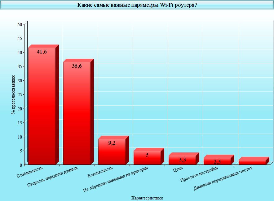 В итоге, как мы и предполагали, стабильность работы и скорость передачи данных являются главными критериями при выборе Wi-Fi роутера.