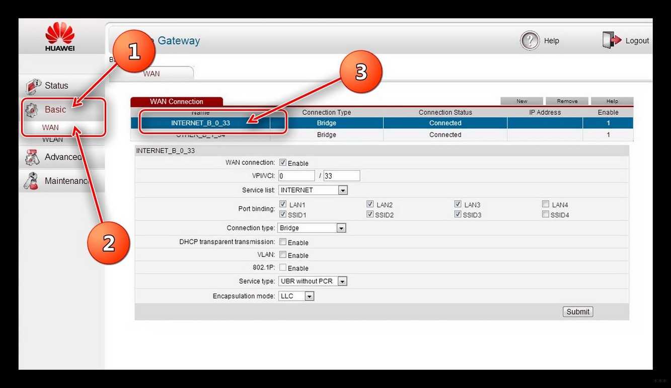 Изменяем «Basic >> WAN Settings» для PVC: 1:
