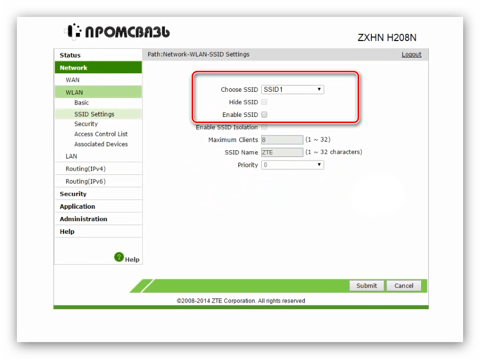 - в пункте «ChooseSSID» устанавливаем значение SSID;