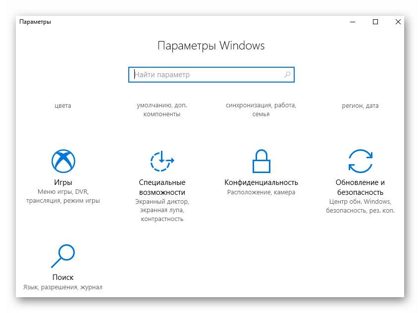- Открываем Параметры системы и ищем вкладку «Обновления и безопасность».