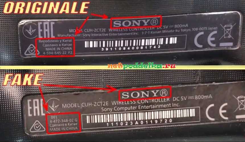 При осмотре некоторых упаковок не возникает проблем с тем как отличить подделку. Фальсификаторы неправильно копируют название, поэтому вместо Dualshock красуется Doubleshock. Такие геймпады совершенно не дотягивают до оригинала Сони.
