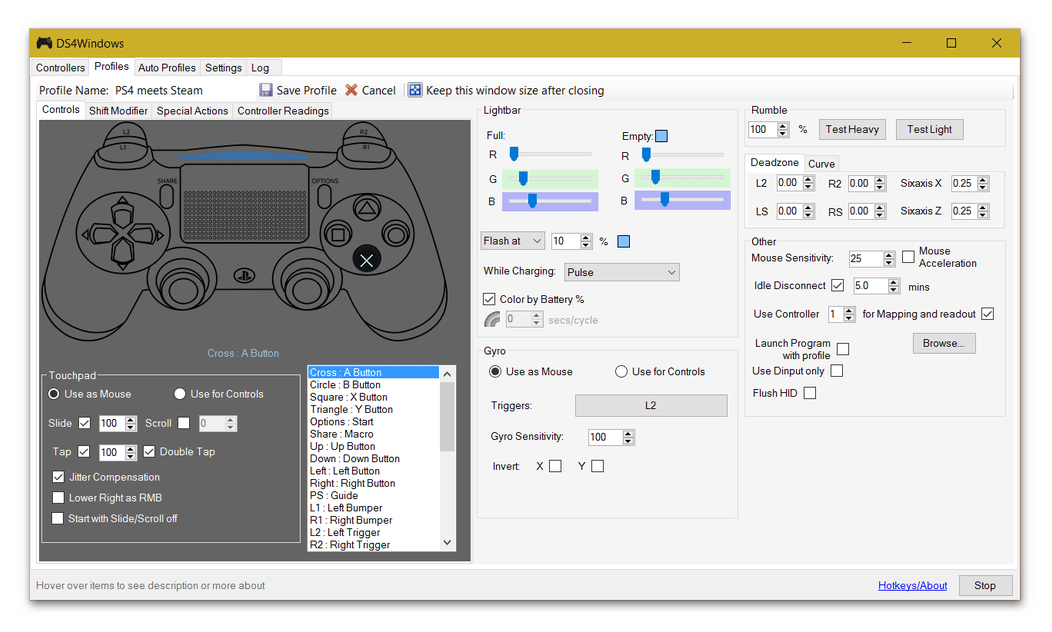 Так же советую почитать эту статью, в которой так же представлено очень подробное описание настроек программы Xpadder для работы с Dualshock 4.