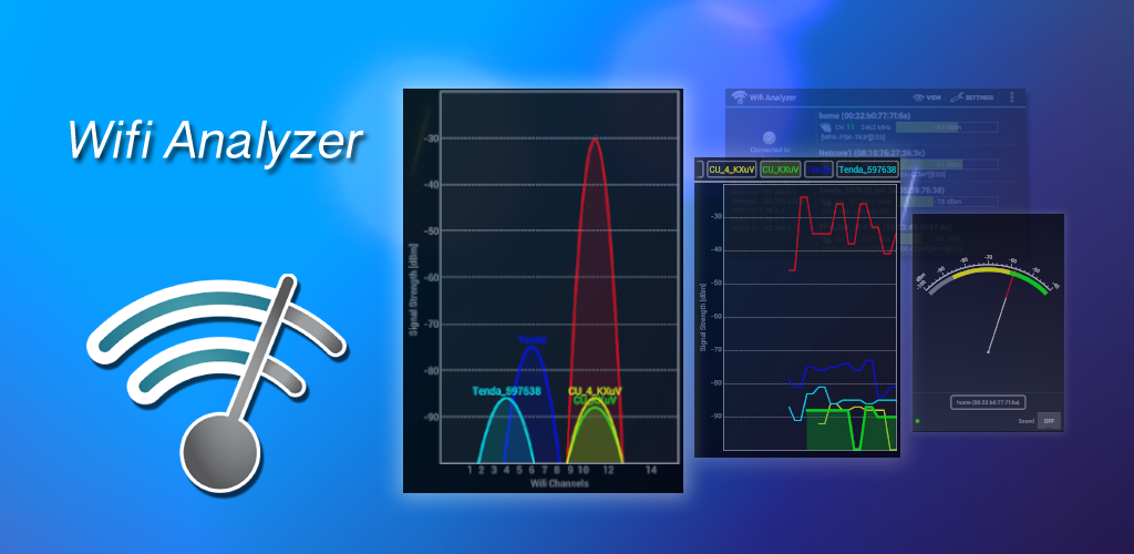 Чтобы это сделать, можно установить на телефон приложение Wifi Analyzer оно совершенно бесплатное и качественно показывает насколько забит эфир в конкретном месте. Качаем, запускаем, ходим с телефоном по квартире и смотрим. Где меньше всего помех, там лучше и ставить свой роутер. Вот вам примеры из интерфейса программы анализатора эфира: