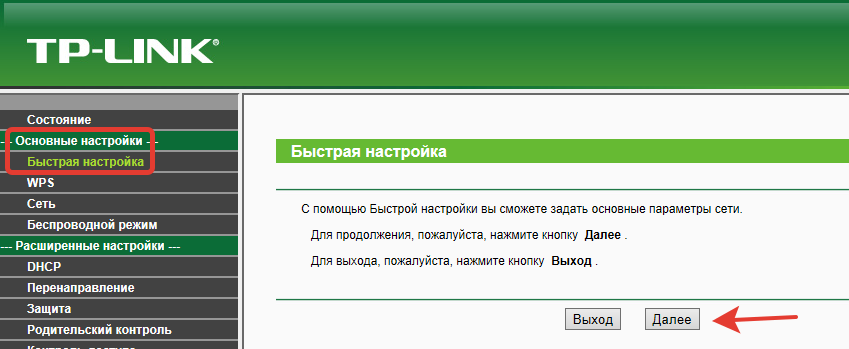 Чтобы не разбираться в пунктах меню, начинающим пользователям рекомендуется воспользоваться опцией «Быстрая настройка». Она позволяет пошагово настроить подключение к интернету, а также задать или изменить базовые параметры устройства.