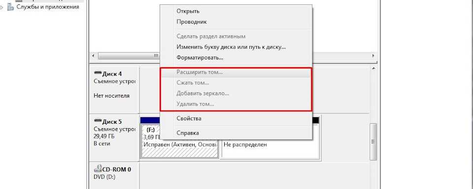 Выбираем пункт «Управление» В левой части консоли выбираем «Управление дисками».