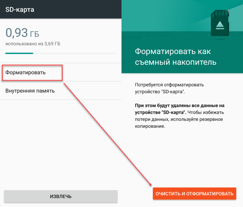 Перед началом использования карт памяти их требуется отформатировать. Эту задачу нужно решить на самом мобильном устройстве, а не на ноутбуке или ПК. Android предлагает такие возможности сразу после установки накопителя, если текущий формат не определяется системой. В противном случае отыскать необходимую функцию можно в меню смартфона.