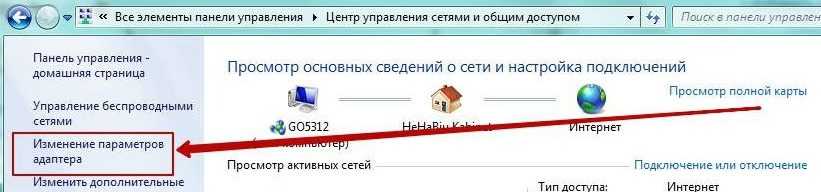 Для того, чтобы обеспечить правильную бесперебойную работу устройства, необходима его установка на автоматическое извлечение IP-адреса. Для этого выполняется такая последовательность шагов: «Пуск»→ «Панель управления»→ «Центр управления сетями и общим доступом». После перехода во всплывшем окне справа обозначить раздел «Изменение параметров адаптера».