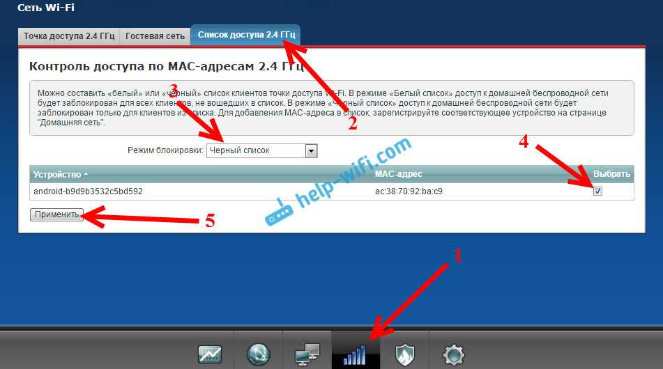 Если вы обнаружили «левого» клиента на вашей точке доступа, то необходимо принять все меры, дабы подобное больше не повторилось. Прекрасным способом наказать нерадивого соседа является вечная блокировка доступа с его устройства к вашей сети. Для этого вам нужно:
