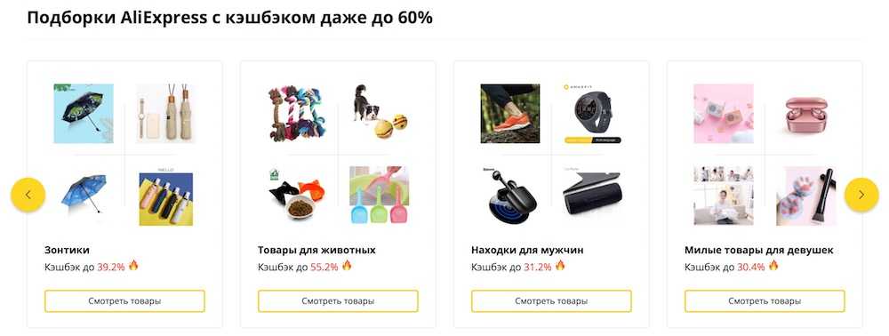Также у Letyshops также есть подборки товаров с Али с кэшбэком до 60%: